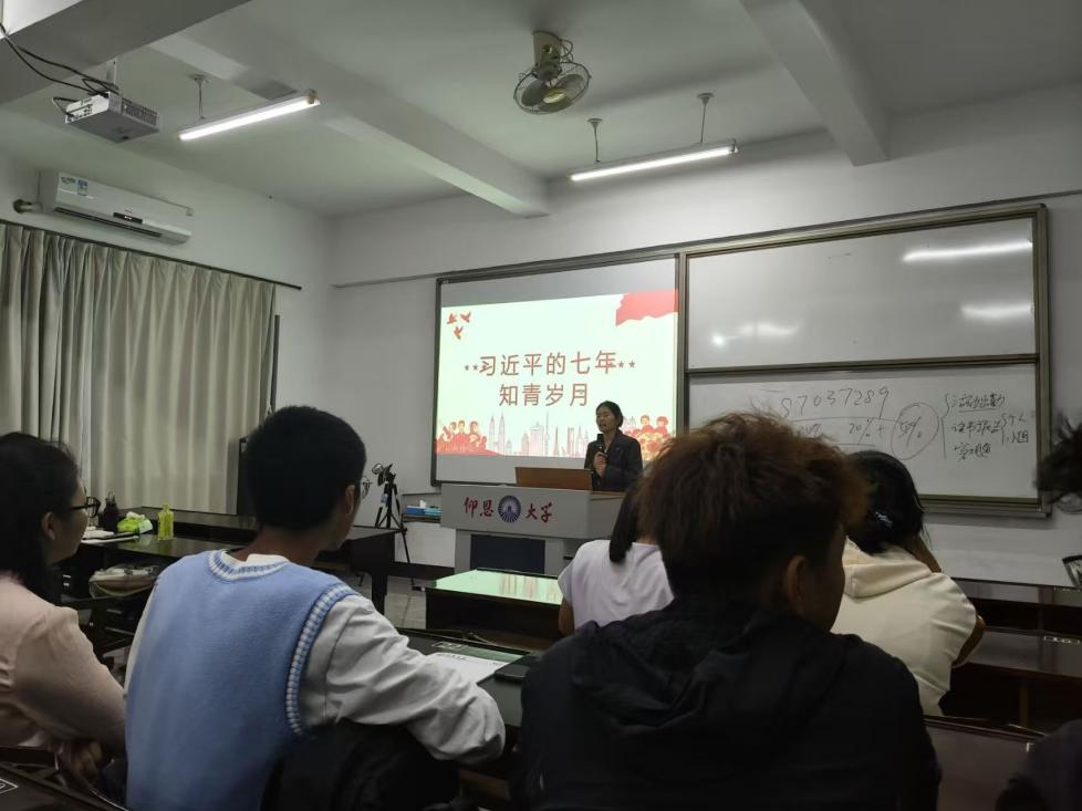 为深入引导青年学生学习贯彻习近平新时代中国特色社会主义思想,从领袖成长足迹中感悟思想伟力、汲取奋进力量,11月6日,习读书社在普照教学楼315室举行《习近平的七年知青岁月》青年启示主题学习会。永利3044noc教师王瑞芳应邀主讲,读书社全体社员参加学习。
