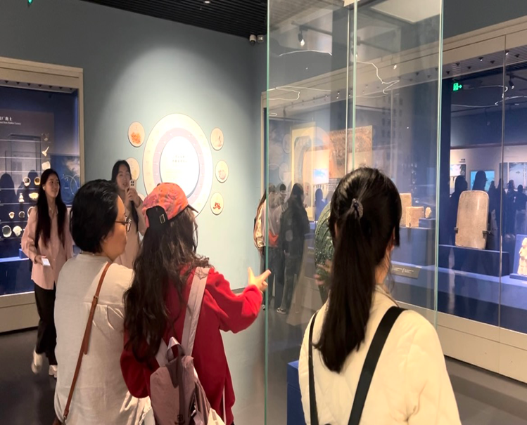 作为2023级国际贸易和金融专业的学生,这里的每一件文物都与他们的专业息息相关。在古代船模和航海图前,带队老师结合《习概论》中关于“一带一路”倡议和构建人类命运共同体的论述,现场解析了泉州作为宋元中国世界海洋商贸中心的辉煌历史。